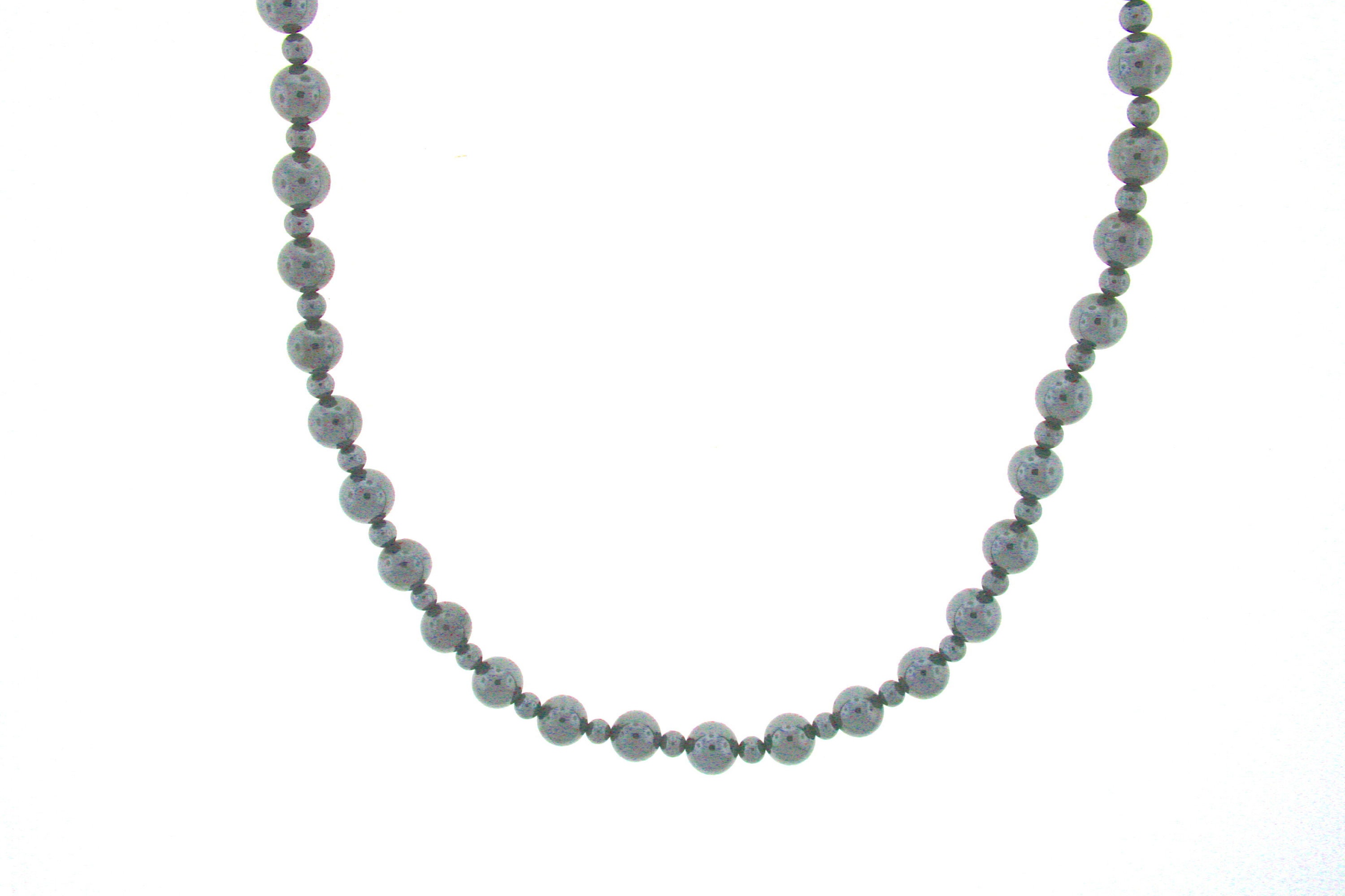 This 23-inch long strung necklace is made up of 3 & 8mm Hematite beads and finished with a sterling silver lobster-claw clasp.